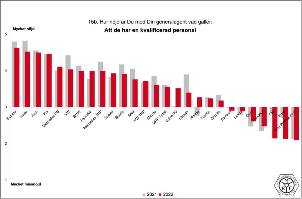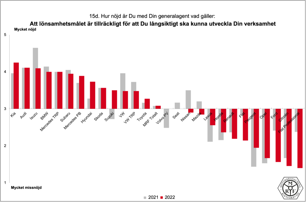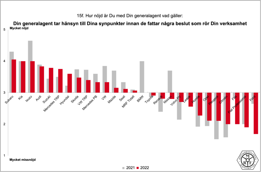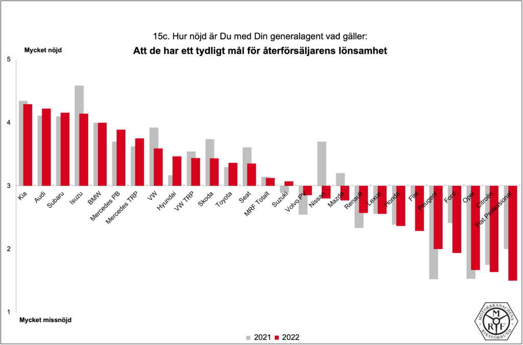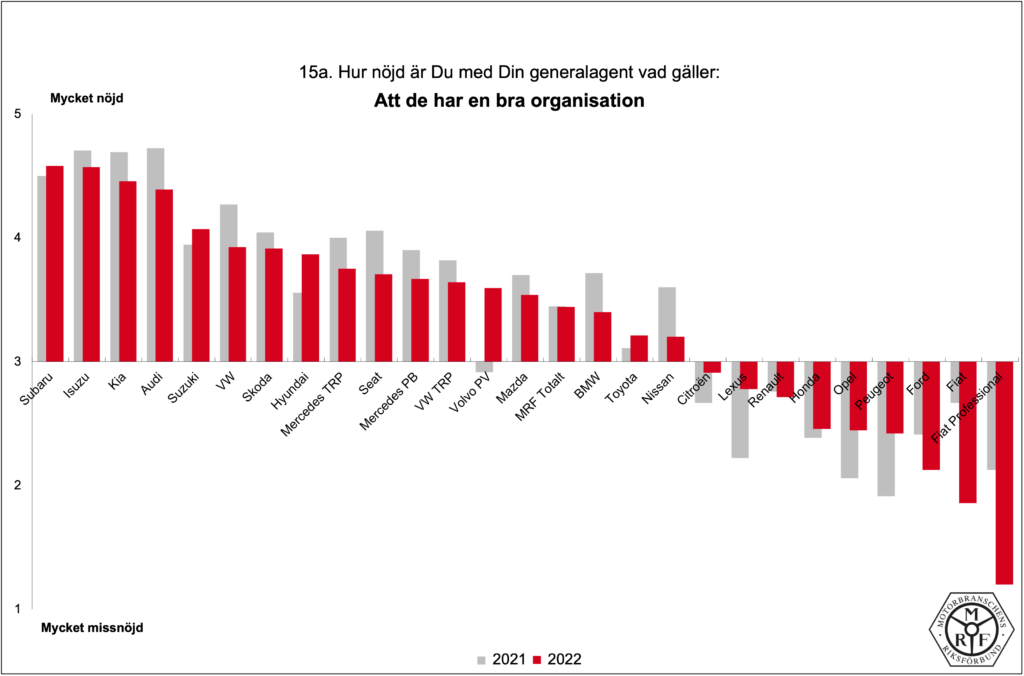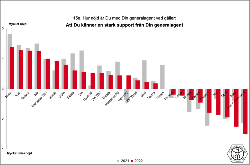 15. Organisation, mål, support 01. LYHÖRDHET FÖR SYNPUNKTER 02. MARKNADSFÖRING 03. FÖRSÄLJNINGSFRAMGÅNGAR 04. BILLEVERANSER 05. GARANTIHANTERING 06. SÄLJARUTBILDNING 07. SERVICEUTBILDNING 08. RESERVDELAR 09. TILLBEHÖR 10. SUPPORT OCH KONTAKT – BILFÖRSÄLJNING 11. SUPPORT OCH KONTAKT – SERVICE 12. SUPPORT OCH KONTAKT – RESERVDELAR 13. FÖRETAGSLEDNING 14. AFFÄRSVILLKOR 15. ORGANISATION, MÅL, SUPPORT 16. MARGINALSYSTEM OCH BONUS 17. SORTIMENT 18. FÖRSÄLJNING TILL FÖRETAG 19. RELATION OCH KOMMUNIKATION 20. IT-STÖD 21. FINANSIELLA LÖSNINGAR 22. ANVÄNDNING AV TJÄNST 23. NÖJDHET AV TJÄNST 24-25. STANDARDKRAV 26. TOTAL NÖJDHET