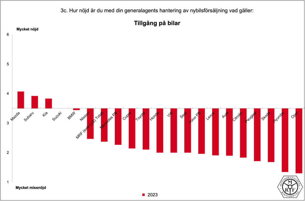 Allt om GA-enkäten 2023 Diagram per fråga 2023 03. Nybilsförsäljning