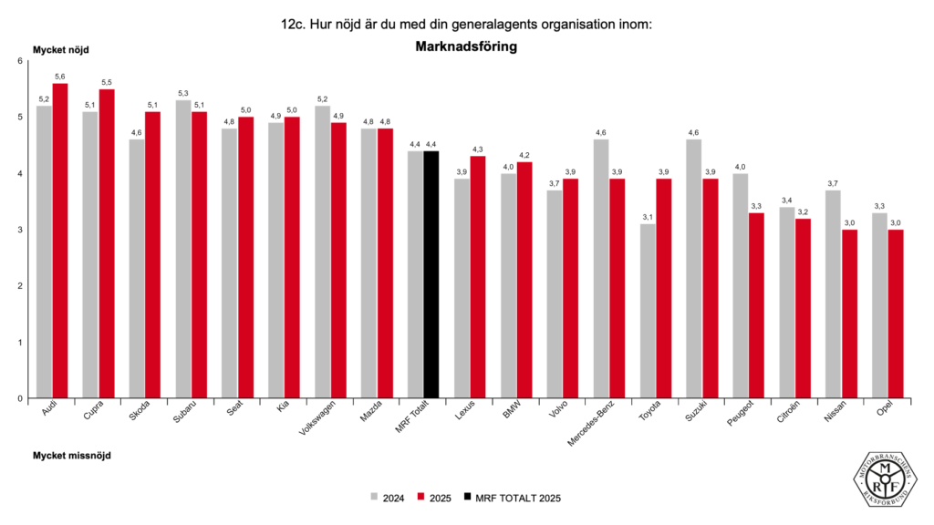 12. Organisation 01. LYHÖRDHET FÖR SYNPUNKTER 02. MARKNADSFÖRING 03. NYBILSFÖRSÄLJNING 04. PROBLEMHANTERING 05. BEGAGNATHANTERING 06. SÄLJARUTBILDNING 07. SERVICEMARKNADSFRÅGOR 08. GARANTISYSTEM 09. SERVICEUTBILDNING (FÖRBRÄNNINGSMOTORER & TRAD. DRIVLINA) 10. SERVICEUTBILDNING (ELEKTRIFIERING) 11. ÅF-UTVECKLING 12. ORGANISATION 13. SAMARBETE MED MÄRKESFÖRENING 14. TOTAL NÖJDHET