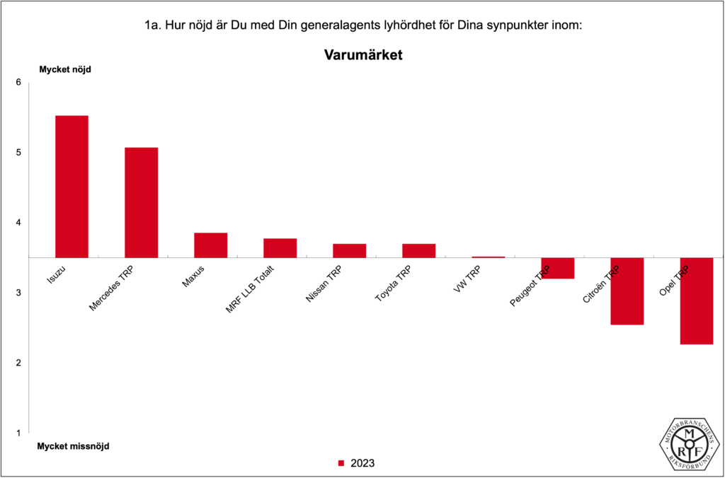 Allt om GA-enkäten Transportbilar 2023 Diagram per fråga 2023 – Transportbilar 01. Lyhördhet för synpunkter