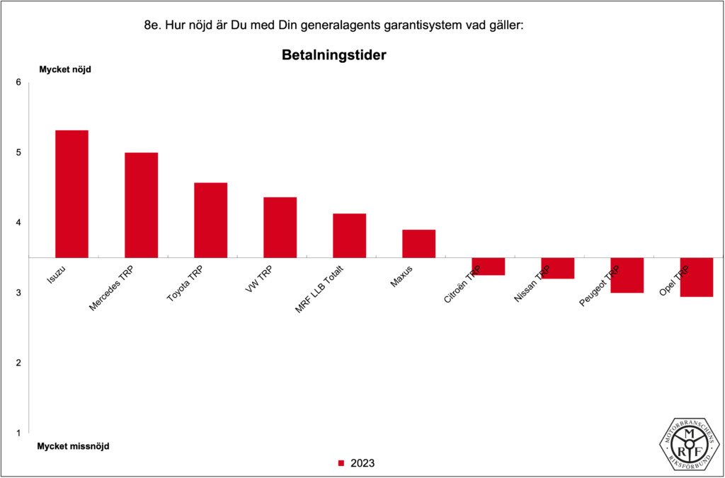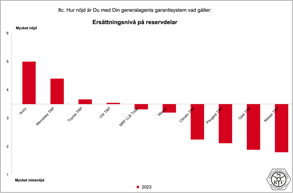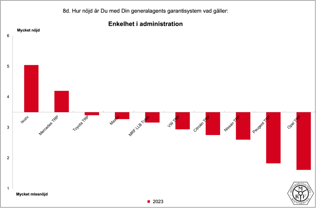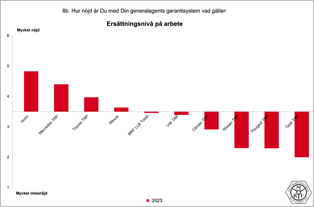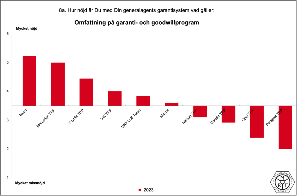 08. Garantisystem 01. LYHÖRDHET FÖR SYNPUNKTER 02. MARKNADSFÖRING 03. NYBILSFÖRSÄLJNING 04. PROBLEMHANTERING 05. BEGAGNATHANTERING 06. SÄLJARUTBILDNING 07. SERVICEMARKNADSFRÅGOR 08. GARANTISYSTEM 09. SERVICEUTBILDNING (FÖRBRÄNNINGSMOTORER & TRAD. DRIVLINA) 10. SERVICEUTBILDNING (ELEKTRIFIERING) 11. ÅF-UTVECKLING 12. ORGANISATION 13. SAMARBETE MED MÄRKESFÖRENING Med “LLB” i diagrammen avses fordon i GA-enkäten för transportbilar