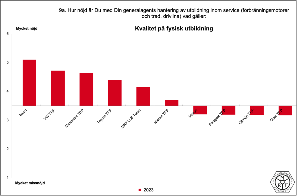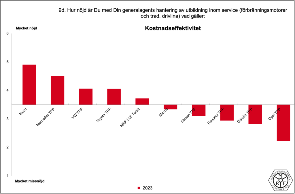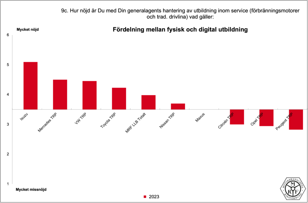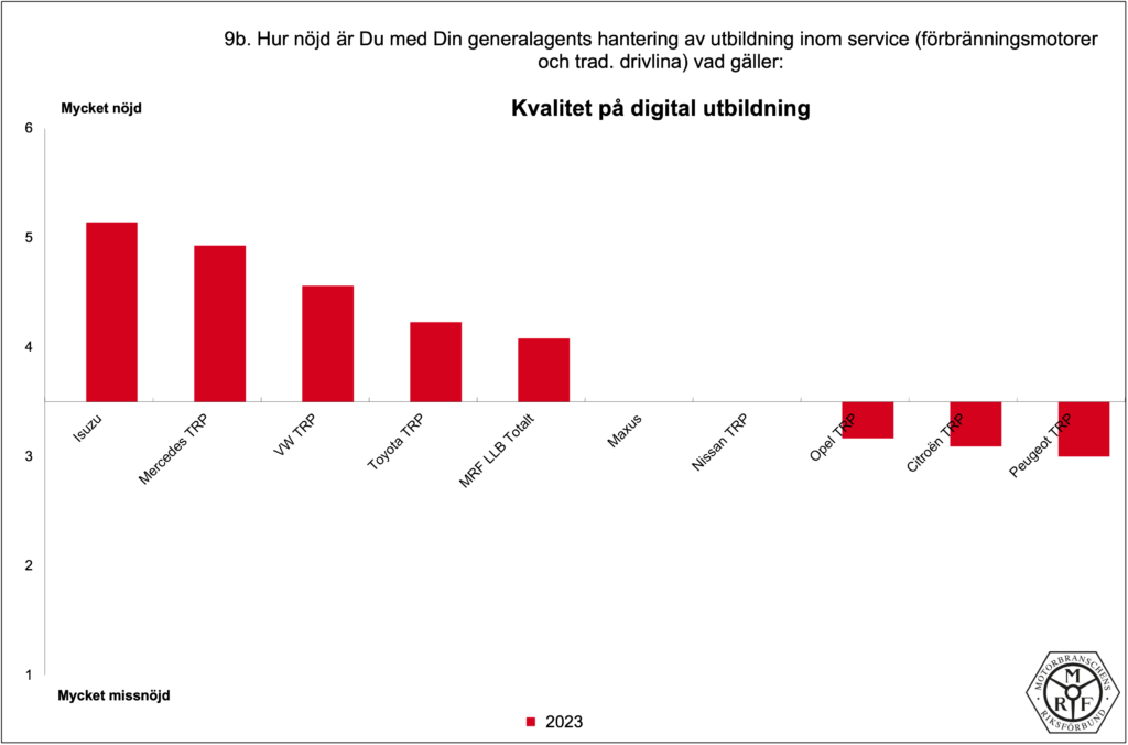 Allt om GA-enkäten Transportbilar 2023 Diagram per fråga 2023 – Transportbilar 09. Serviceutbildning (Förbränningsmotorer & trad. drivlina)