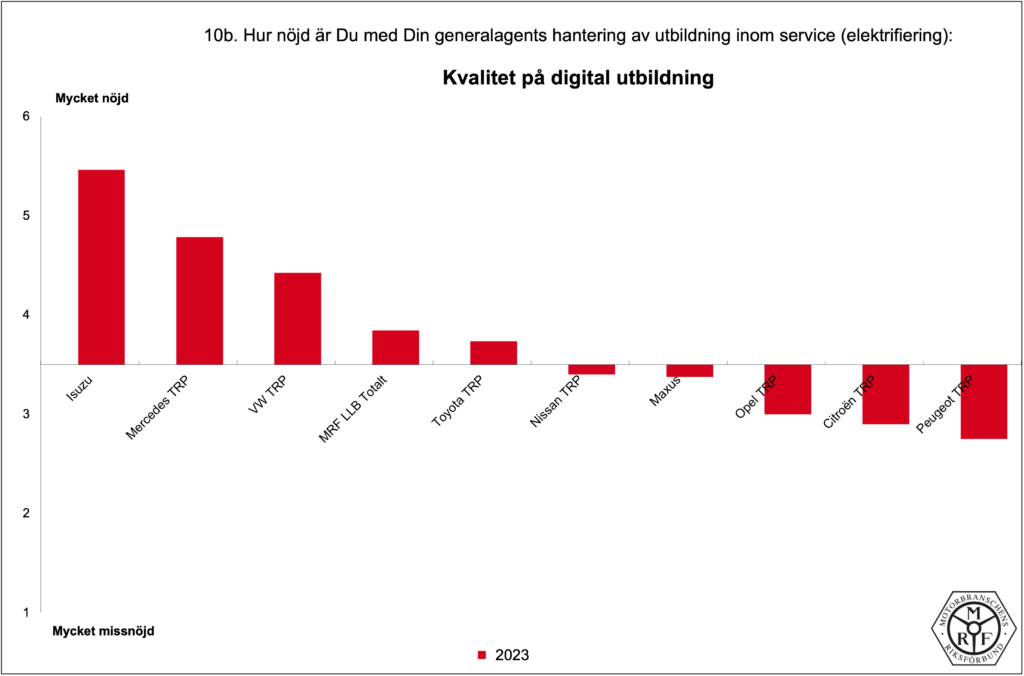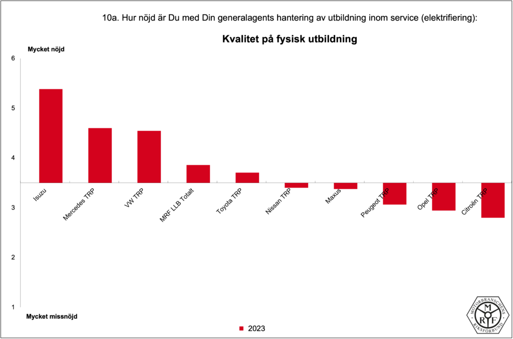 Allt om GA-enkäten Transportbilar 2023 Diagram per fråga 2023 – Transportbilar 10. Serviceutbildning (Elektrifiering)