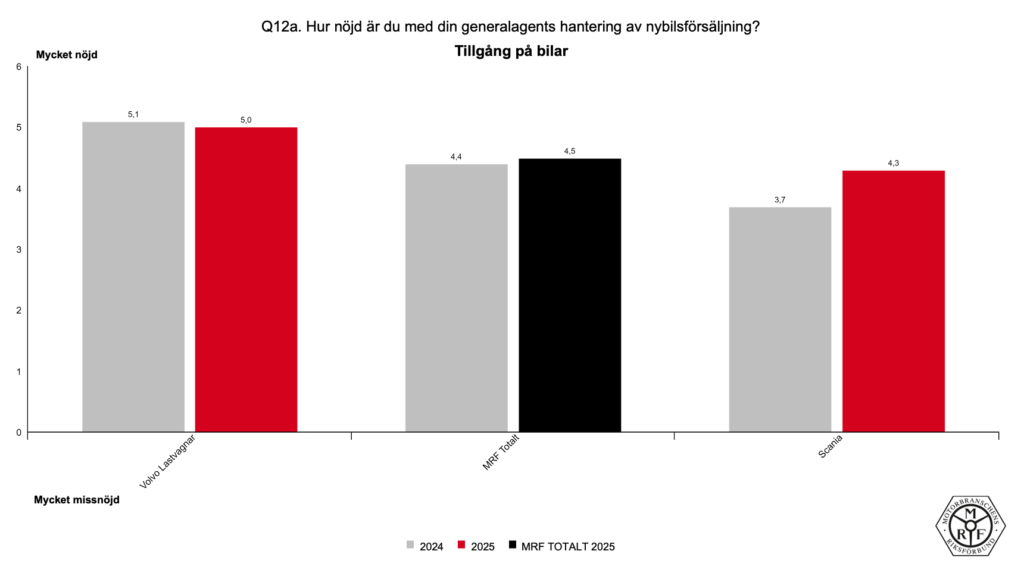 12. Tillgång 01. KOMMERSIELLA VILLKOR 02. AFFÄRSUTVECKLING 03. DIGITALA TJÄNSTER 04. SERVICEAVTAL 05. FÖRSÄLJNING 06. RESERVDELSTILLGÅNG 07. GARANTIER 08. UTBILDNING 09. UTBILDNING (ELEKTRIFIERING) 10. RESERVDELSFÖRSÄLJNING 11. ADMINISTRATION 12. TILLGÅNG 13. RISKHANTERING 14. KVALITET PÅ UTBILDNING 15. UTBILDNING INFÖR FABRIKSKLARA FORDON 16. MARKNADSFÖRING 18. UTVECKLING 19. SAMARBETE OCH MÄRKESFÖRENING 20. TOTAL NÖJDHET