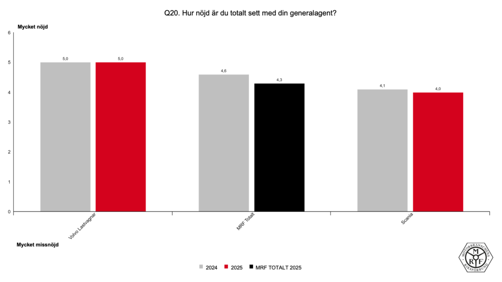 20. Total nöjdhet 01. KOMMERSIELLA VILLKOR 02. AFFÄRSUTVECKLING 03. DIGITALA TJÄNSTER 04. SERVICEAVTAL 05. FÖRSÄLJNING 06. RESERVDELSTILLGÅNG 07. GARANTIER 08. UTBILDNING 09. UTBILDNING (ELEKTRIFIERING) 10. RESERVDELSFÖRSÄLJNING 11. ADMINISTRATION 12. TILLGÅNG 13. RISKHANTERING 14. KVALITET PÅ UTBILDNING 15. UTBILDNING INFÖR FABRIKSKLARA FORDON 16. MARKNADSFÖRING 18. UTVECKLING 19. SAMARBETE OCH MÄRKESFÖRENING 20. TOTAL NÖJDHET