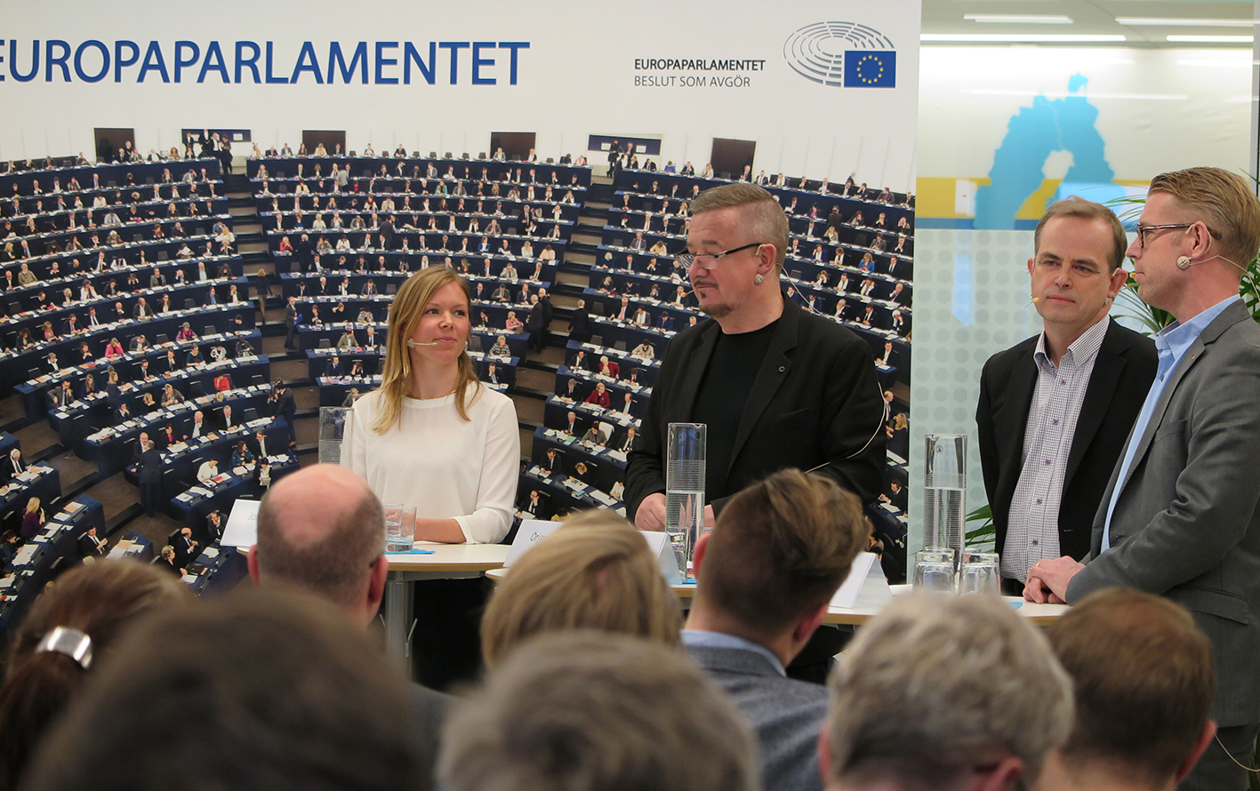 Men strunt samma den här gången, Europa kändes allt lite närmare i går när EU-parlamentets svenska informationskontor bjöd in till panelsamtal i anledning av nya avgastester. Till höger i bild syns MRF:s jurist David Norrbohm.
