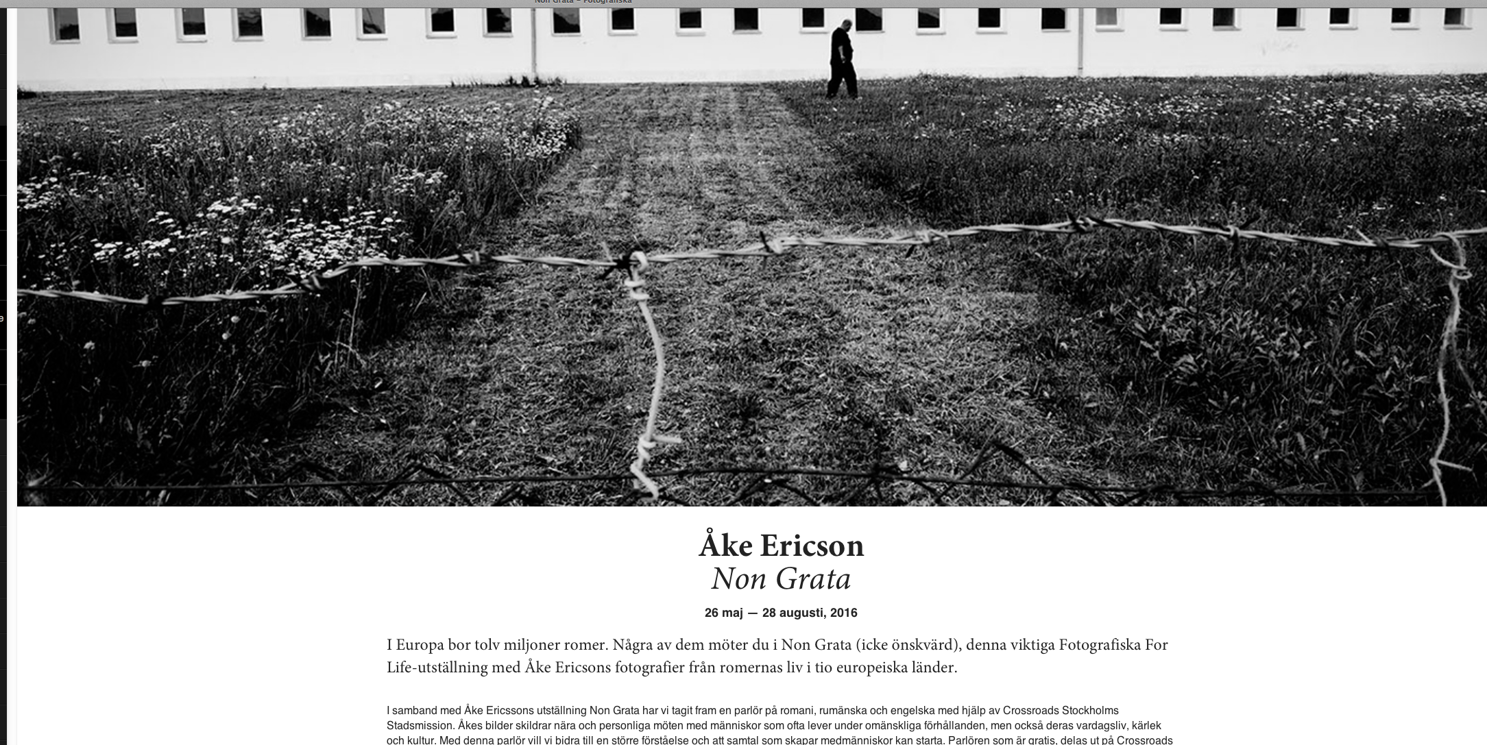 Åke Ericson heter en fotograf som då och då plåtar för Motorbranschen. Nu ställer han ut bilder på Fotografiska museet i Stockholm. Ett projekt som heter Non grata, som handlar om europeiska romers utsatthet och som Åke har jobbat med i sex år.