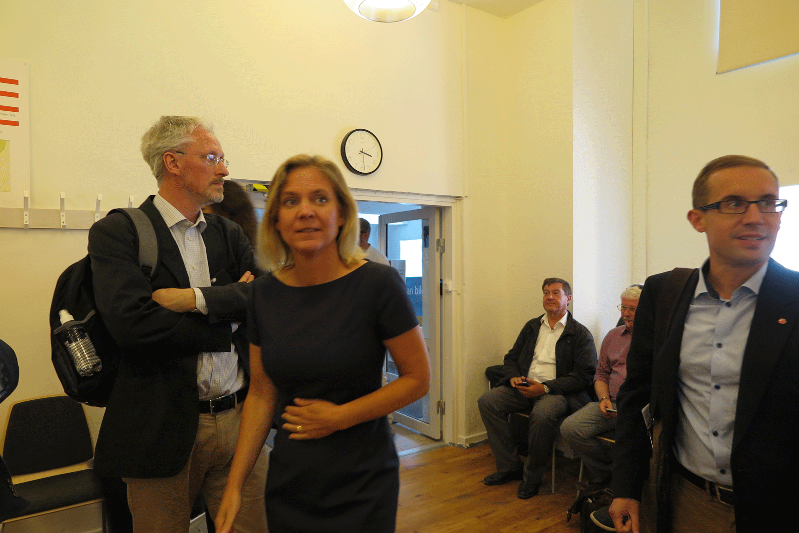 Det ska bara tilläggas att seminariet var fullsatt och kamerorna smattrade. På vår bild här är det MRF:s vd Tommy Letzén som skymmer Håkan Samuelsson. Men Martin Lundstedt, tv, och Magdalena Andersson syns ju.