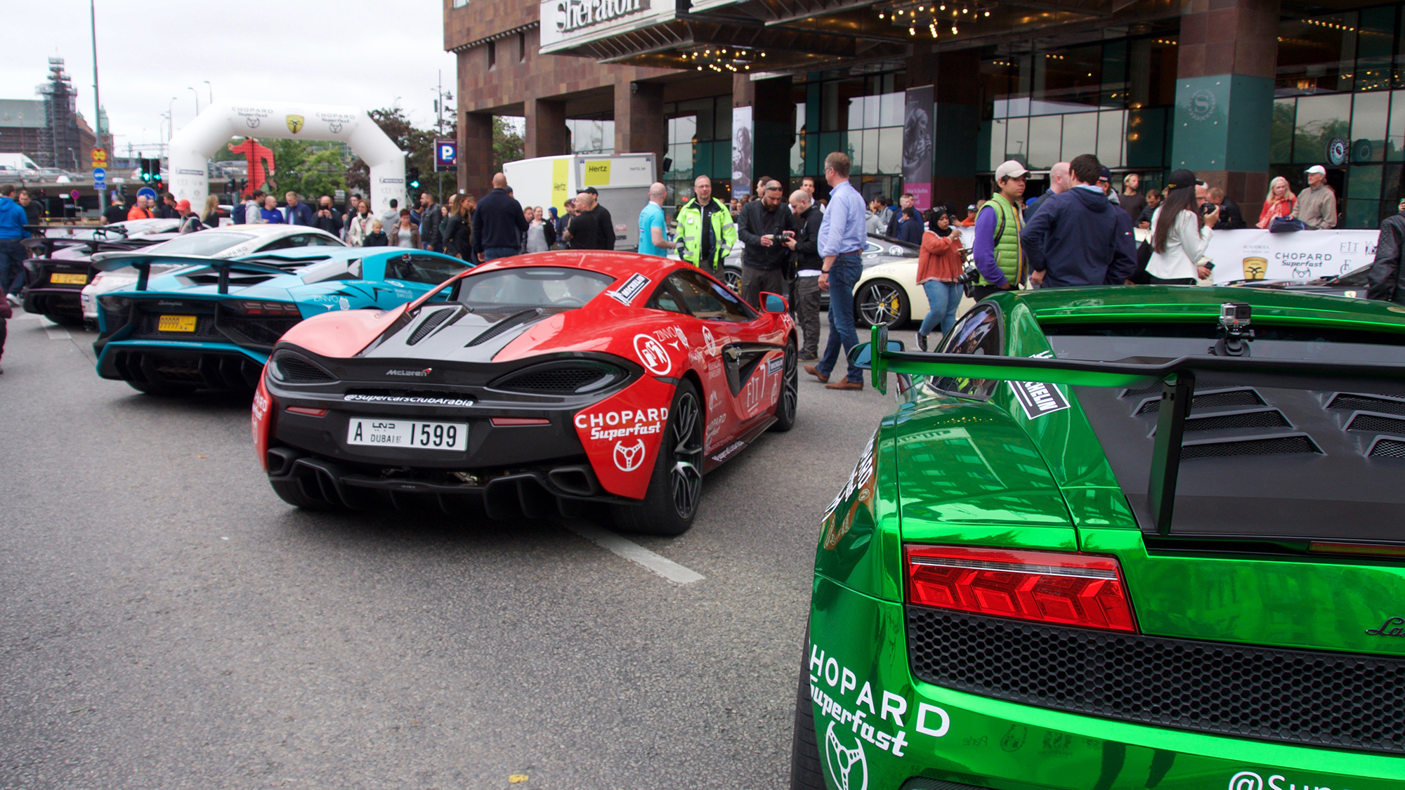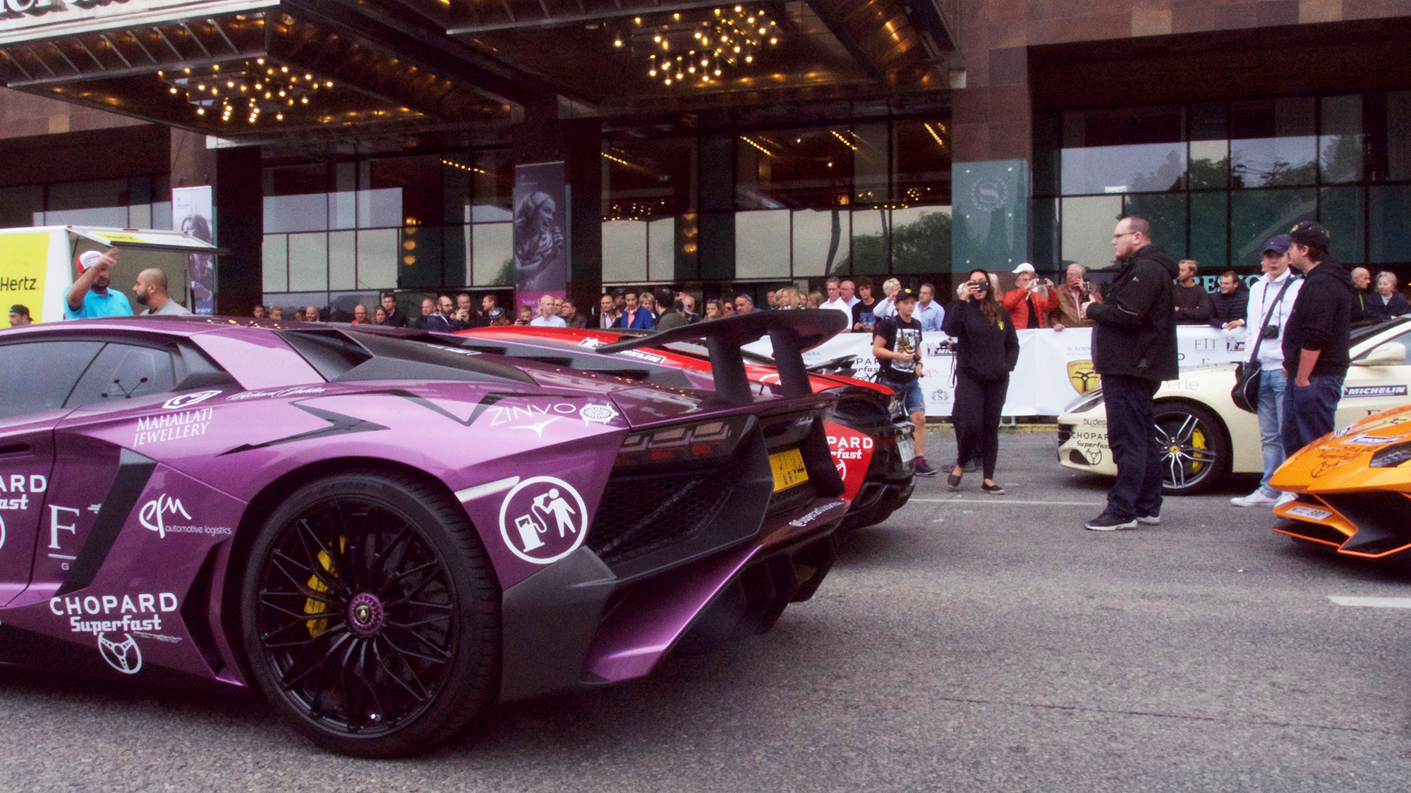 Lamborghini, Ferrari, Porsche, Aston Martin var några som rullade i väg på turnén mot Monaco.