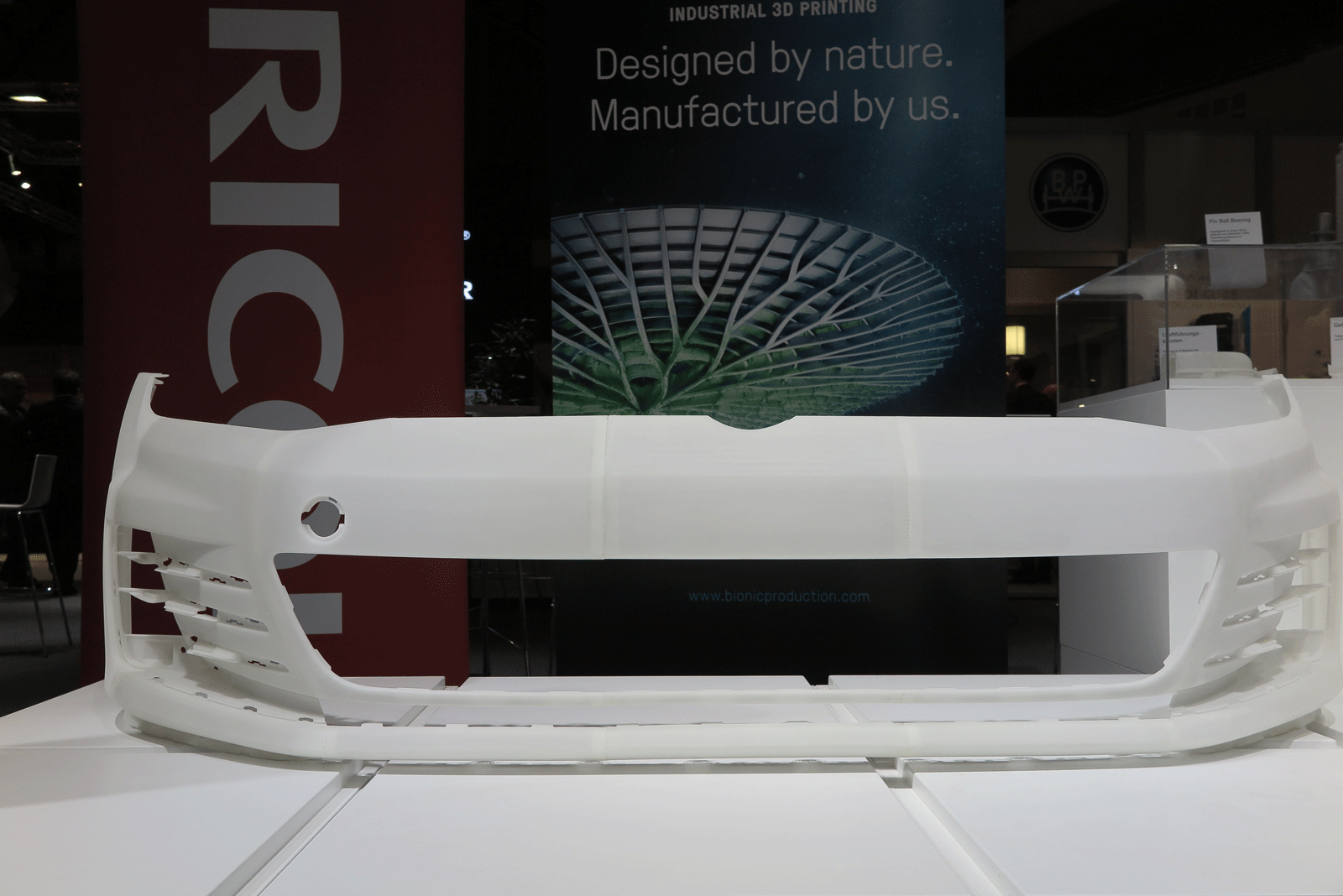 Bland annat hela innovationshallen där stötfångaren i polypropylen, printad från en 3D-skrivare finns tillsammans med reservdelar av plast och aluminium.