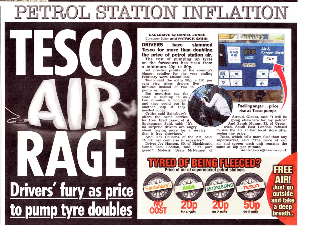 Inte visste vi att många brittiska mackar tar betalt för att fylla luft i däcken.