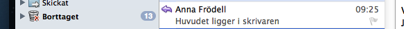 När jag ser det här i ämnesraden “Huvudet ligger i skrivaren” upptäckte jag humorn flera dagar efteråt, reagerade inte alls när det kom för det var så självklart då.