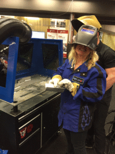Framme på Automässan testade Ing-Cathrin att svetsa aluminium. Det var roligt det också.