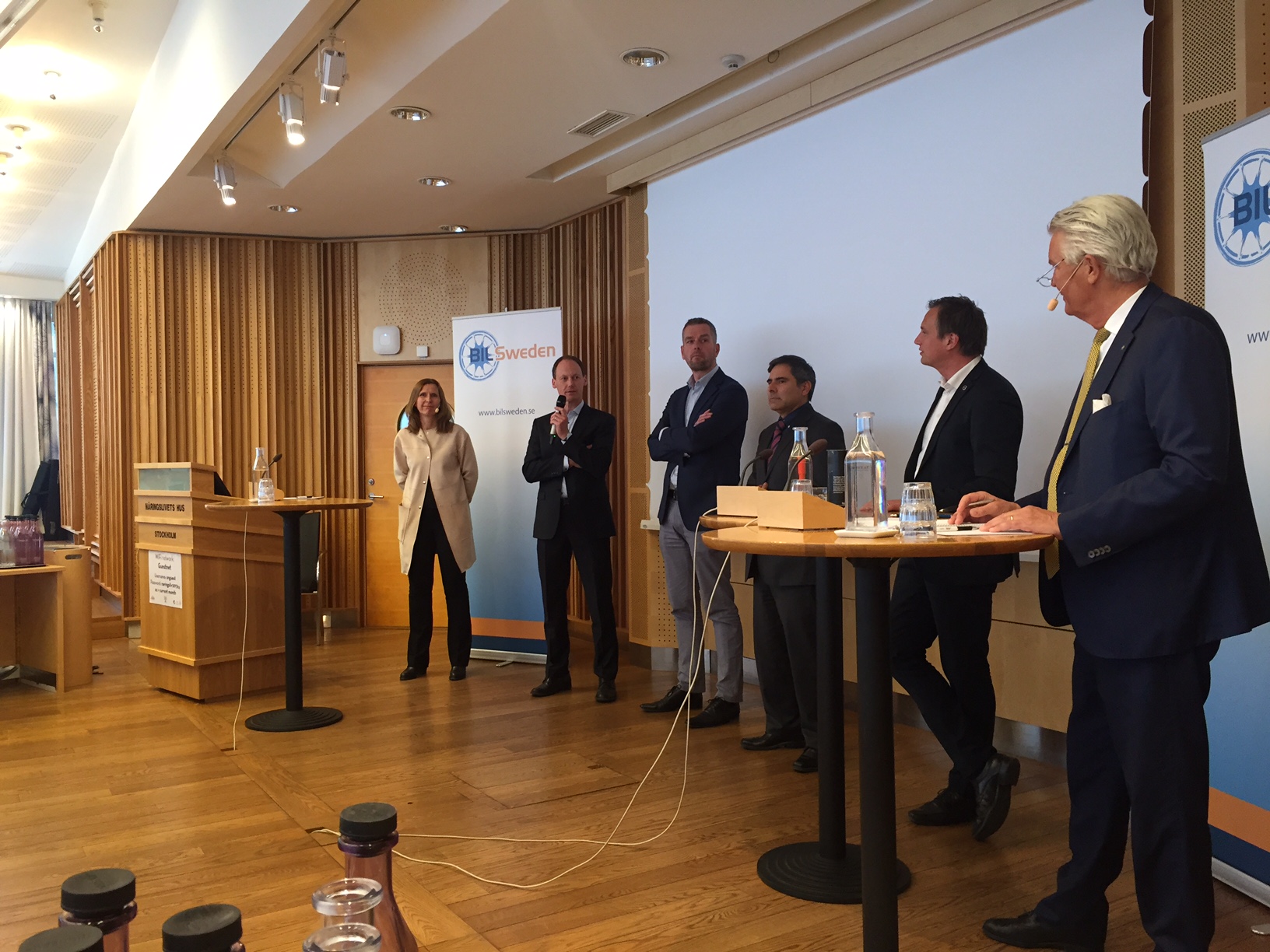 På bilden sync fr v Irene Bernard från Audi, Johan Berglund från Volvo Cars, Marcel Kroeze från Nobina, Jörge Soria Galvarro från Scania, Peter Wallin från Volvo CE och Bertil Moldén från Bil Sweden.