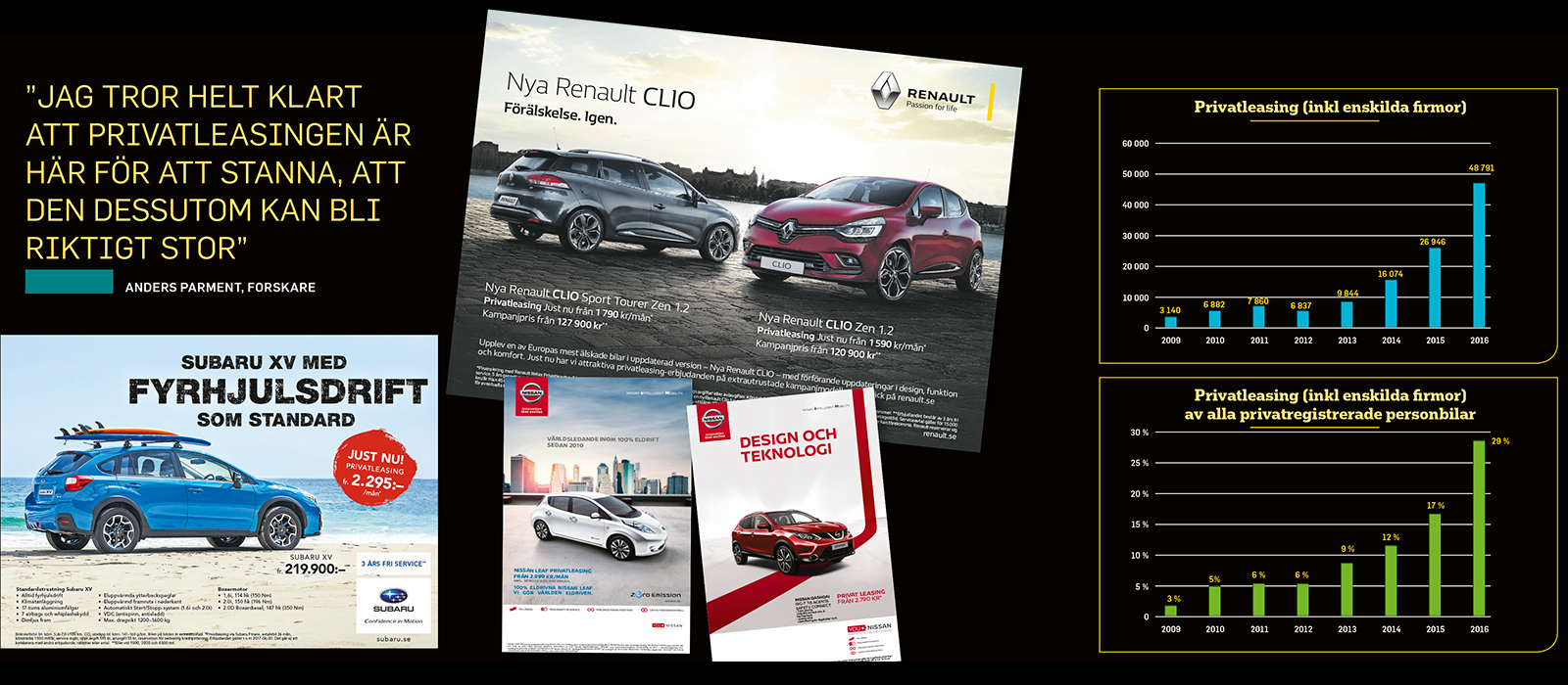 – Det har varit väldigt lätt för säljaren att argumentera för privatleasingen, det är en lättsåld produkt. I början var kunderna ovana, men efterhand som säljarna har finslipat sin argumentation har det blivit enkelt. Sedan är frågan om det har blivit för enkelt, för som det är nu har det hänt att vi säljer privatleasing även till kunder som egentligen borde köpa bilen. Därför försöker vi nu styra försäljningen mot fler kundanpassade erbjudanden.