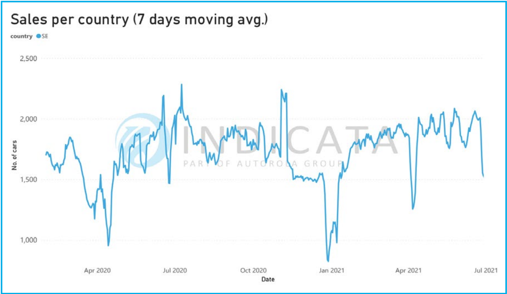 Bland de mindre märkena utmärker sig Tesla med en ökning av månadsförsäljningen från 143 juli 2020 till 280 i juli i år, +95,8%. Med denna ökning utgör de nu ca 0,5% av begagnat försäljningen i Sverige.